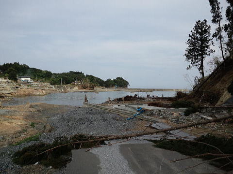 中学生たちはいち早く、その上にある広田水産高校の校舎の上にある校庭へ逃げたので全員無事でした。