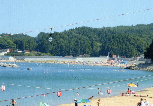 こちらは震災前の夏の大野海岸(手前)、田谷海岸(奥)です。