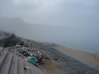 ボランティアの方々が一生懸命片づけてくれて砂浜にはあまりガレキは残っていませんが、遊歩道には集められたガレキが所々に残っています。