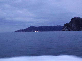 目的地まで一時間、綾里崎沖10マイルぐらいかな。