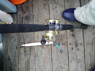 前に持っていたジギングロッドやツインパワー8000番は、結局見つからなくて、かろうじて見つけた剣崎V2ヒラメスペシャル255という三角バケ用のロッドと砂に埋もれて見つけたリールで、上州屋さんに頼んでオーバーホールしたシマノオシアジガー3000番です。