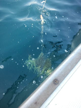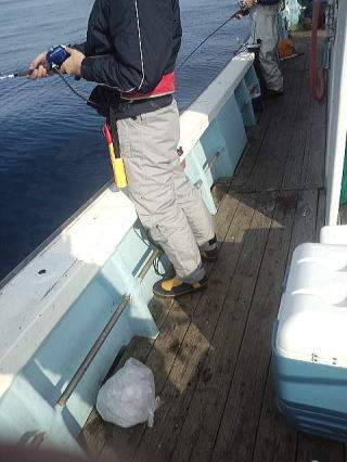 ガイドにラインを絡ませているとKドウさんがAさんに「早く、下ろさないと魚が逃げてしまうよ。急げ~急げ~、あわてるなゆっくり急いで・・・。」と言って焦らせています。