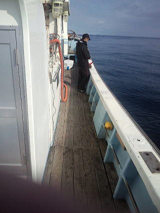 荒神丸船長に「ボカギもってこ~。」と言われ、慌てて、小友晃伸丸さん走ります。