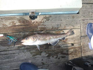 後ろで何やら騒いでいると思ったら、Kドウさんがタラと沖キスのダブルを釣っていましたよ。