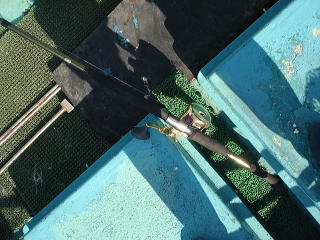 今度の船は船外機のように小回りの利く船ではなく、シャフト船なので、バックに走らせるとなかなか曲がってくれないので、コツが入ります。