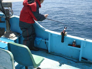 ポイントについて、流し釣り・・・風に流されて、あまりうまく船立てられません。