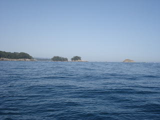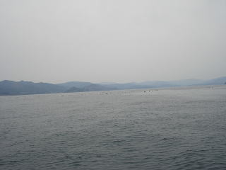 まずは唐桑半島側へ、うねりと風でスプレーがかかりますね。