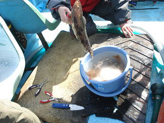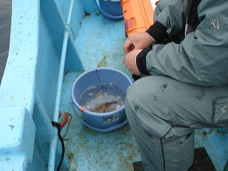 後半の水深60m付近で、急にアタリが出だし、終わってみればカレイ48枚、アイナメ10本以上、リリースしたカジカも多数でした。