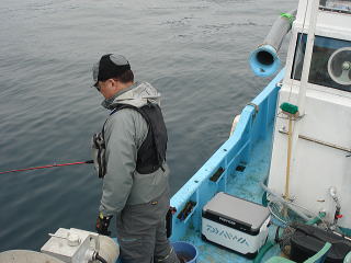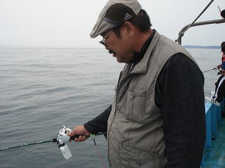 こちらは第一晃進丸船長さん、すぐ脇で釣っていて、絶妙なアワセで釣っていました。