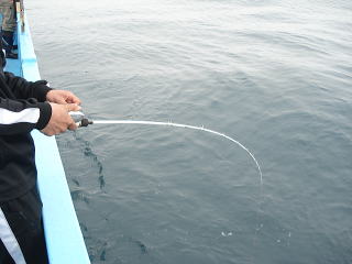 どうにかラインをまっすぐ立てて釣らせることが・・・というより操船だけでいっぱいいっぱいでしたけど。