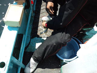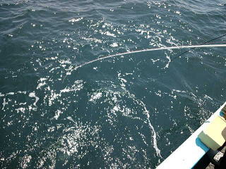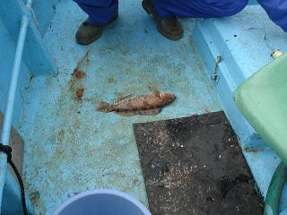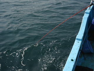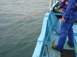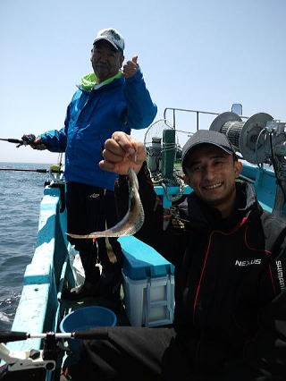 とりあえず1匹でも釣ろうということになり港からあまり離れていない水深45m付近を狙います。