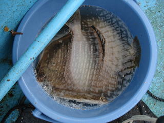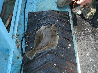 「アイナメかな。グングン引いているよ。」と見えてきたのは30cmを超えるマコガレイでした。