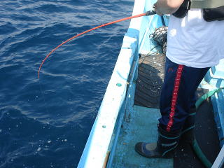 みんなジギングのほかに、いざナブラを見つけたらとキャスティングロッドも持ってきていました。
