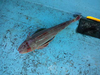 その次にA君パパにアタリが・・・「小さいよ~。」と上がってきたのは、この辺ではカナガシラの言っているホウボウ?・・・同じ?