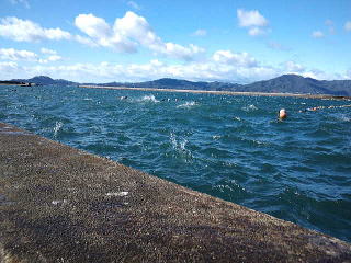 船を出すときはそんなに強い風ではなかったのですが、防波堤を出ると波しぶきが入るくらいの風です。
