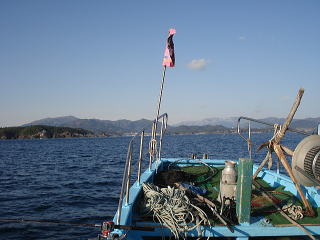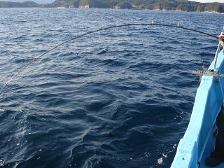 広田湾は北西の風が吹くと荒れやすいのですが、椿島を越えて黒崎側に来ると広田半島が風を防いでくれてナギることがあります。