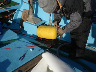 今回の上架で自分専用のGPS魚探の振動子をつけてもらい、やっと魚探が使えるようになりました。