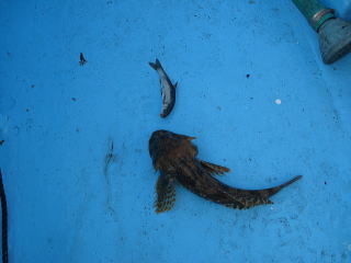 反対側で何か釣れたので「ヒラメか・・・。」と期待したのですが、なぜかカジカでした。