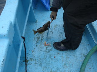 すぐ釣れるのでクーラーボックスに入れる間もなく、そのまま置いておくとタラが自分から動いていきますね。