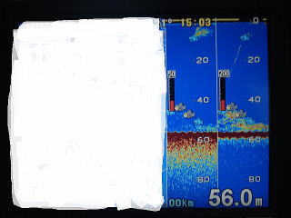 魚探にこんな反応が出たのと同時にA君パパにアタリがありました。