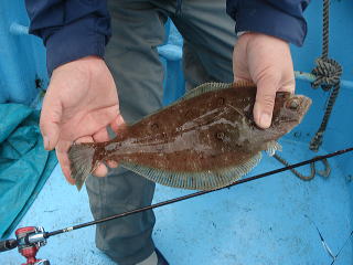 M先生、40cmぐらいのマコガレイを釣っていましたよ。