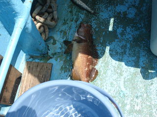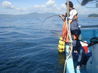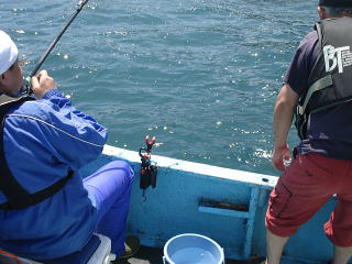 船長に頼んで最後に根のキツイところに行ってもらいイワシを落としますがアタリが出ません。