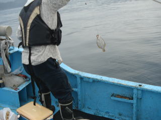 あまりに簡単に釣れるので面白くなくなり私は2枚釣ったところでスロージギングに変更です。