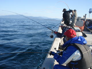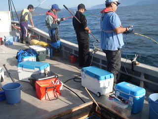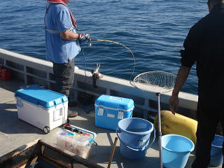 全部で8人の乗合で、エサは超高級なマイワシです。
