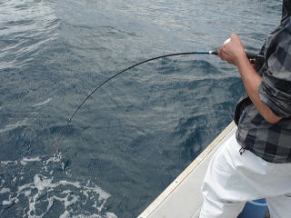 1本針なので、慎重にアタリを見て、ググッと竿先が下がった所をアワセると乗りました。
