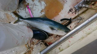 5分ぐらいのやり取りで60cmぐらいのワラサが釣れましたね。
