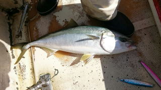 今回のワラサの水深は10m前後でヒット、ピカピカ系のジグが良かったようです。
