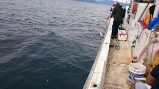 移動して水深70m付近で仕掛けを下すといきなり糸ふけが出て、あれっなんだ?と思って、アワセで見ると、いきなりジーとラインを引き出されました。