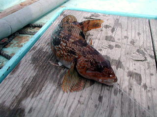 正午ころ腹も減っていたのでパンを食べようとしたら右側のアイナメが掛かってきました。