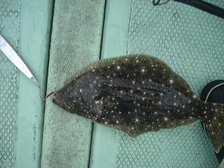 青物にしては、あんまり引かないなぁと思ったら、なんとヒラメがかかっていました。