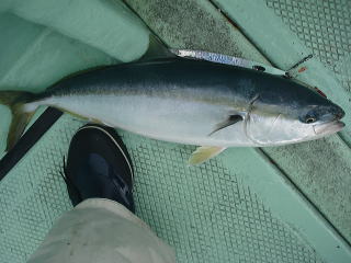 その15分後にドスッというアタリとグングンという引きを楽しみながらイナダが釣れました。
