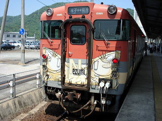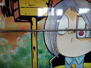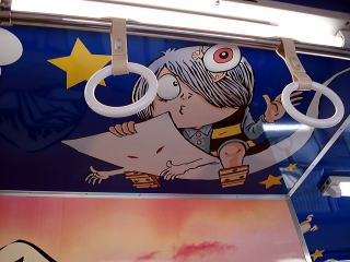 列車に乗ると列車内トイレの壁には鬼太郎の絵が描いてありました。