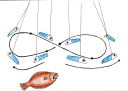 ラインを上に引っ張るとカーブを描きながら上斜めに、ラインを緩めるとそのカーブにつられる様に下斜めに泳ぎます。